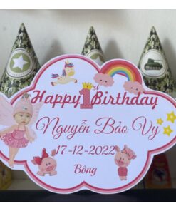 Để buổi tiệc của bé thêm phần ngộ nghĩnh và đáng yêu, bố mẹ có thể tham khảo sản phẩm Banner bảng tên treo sinh nhật, thôi nôi trang trí bàn tiệc cho bé nhé
