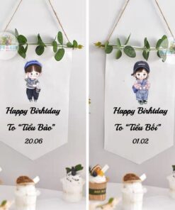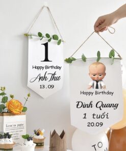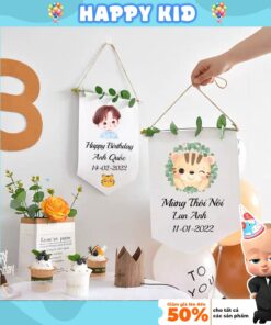 Banner in tên bé trang trí sinh nhật thôi nôi đầy tháng bé trai bé gái theo yêu cầu HAPPYKID BANNERIN