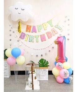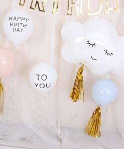– Bóng hình đám mây trắng là phụ kiện trang trí sinh nhật đơn giản, màu sắc giúp cho không gian tiệc của bạn thêm xinh