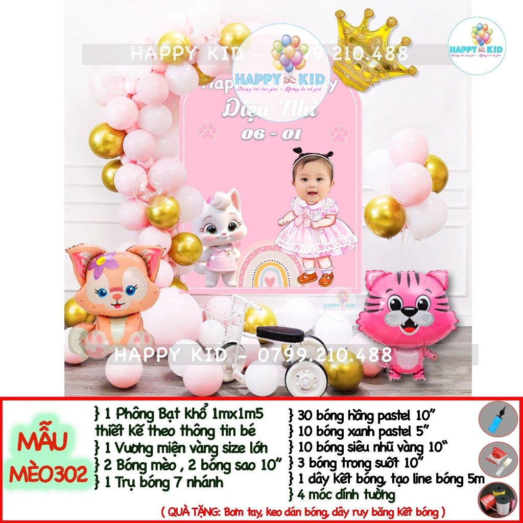 [CB Mèo 302] Set bóng tuổi Mèo kèm backdrop dễ thương trang trí sinh nhật thôi cho bé trai bé gái Happy Kid -Trang Trí Sinh Nhật SBTM