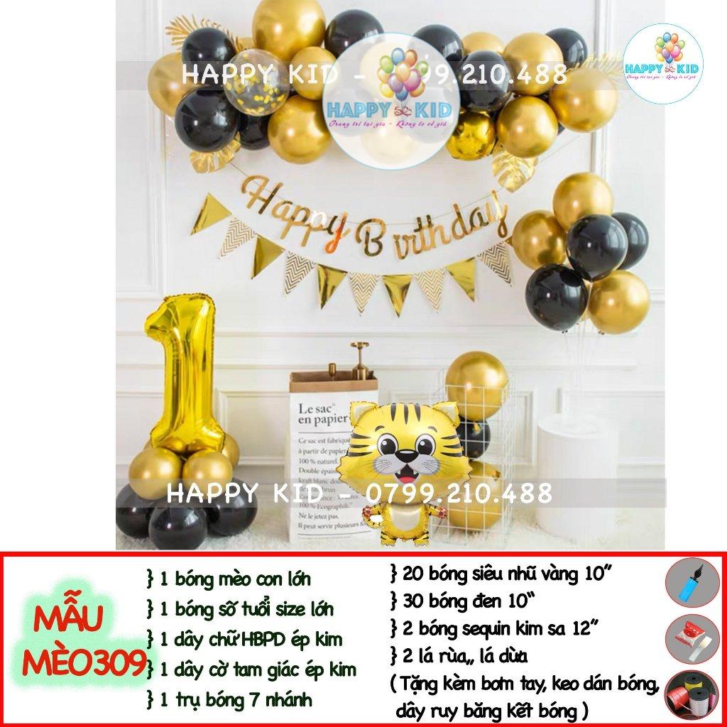 [CB Mèo 309] Set bóng tuổi Mèo kèm backdrop dễ thương trang trí sinh nhật thôi cho bé trai bé gái Happy Kid -Trang Trí Sinh Nhật SBTM