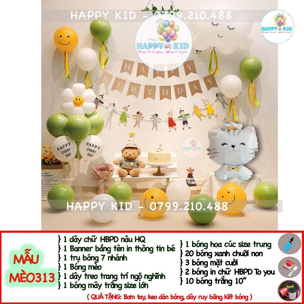 [CB Mèo 313] Set bóng tuổi Mèo kèm backdrop dễ thương trang trí sinh nhật thôi cho bé trai bé gái Happy Kid -Trang Trí Sinh Nhật SBTM
