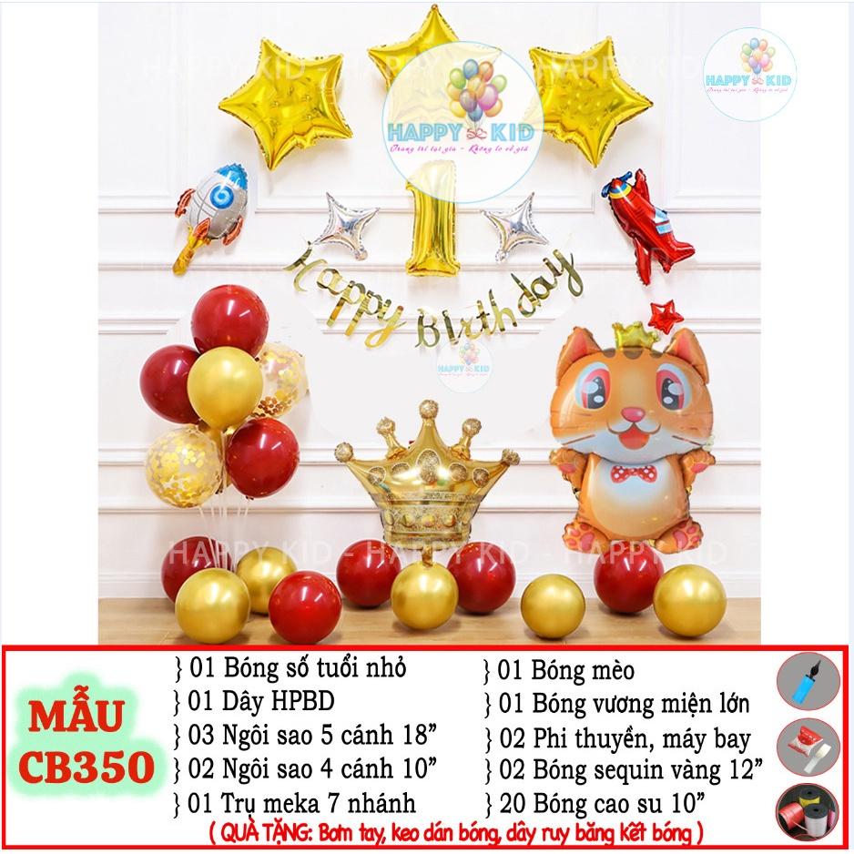 [CB Mèo 350] Set bóng tuổi Mèo kèm backdrop dễ thương trang trí sinh nhật thôi cho bé trai bé gái Happy Kid -Trang Trí Sinh Nhật SBTM