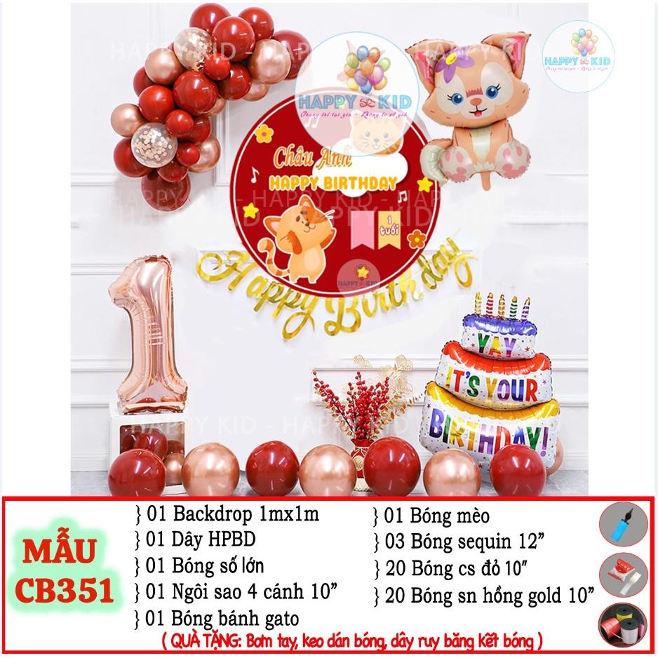 [CB Mèo 351] Set bóng tuổi Mèo kèm backdrop dễ thương trang trí sinh nhật thôi cho bé trai bé gái Happy Kid -Trang Trí Sinh Nhật SBTM