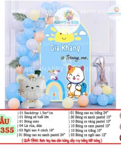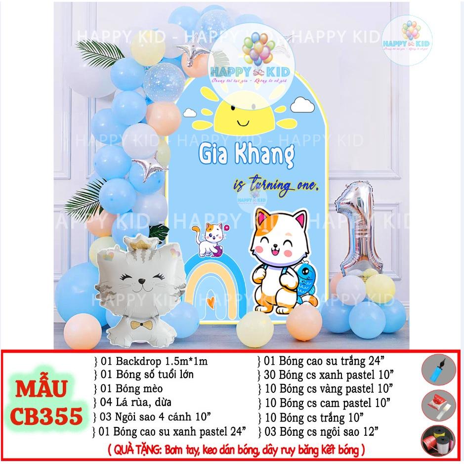 [CB Mèo 355] Set bóng tuổi Mèo kèm backdrop dễ thương trang trí sinh nhật thôi cho bé trai bé gái Happy Kid -Trang Trí Sinh Nhật SBTM