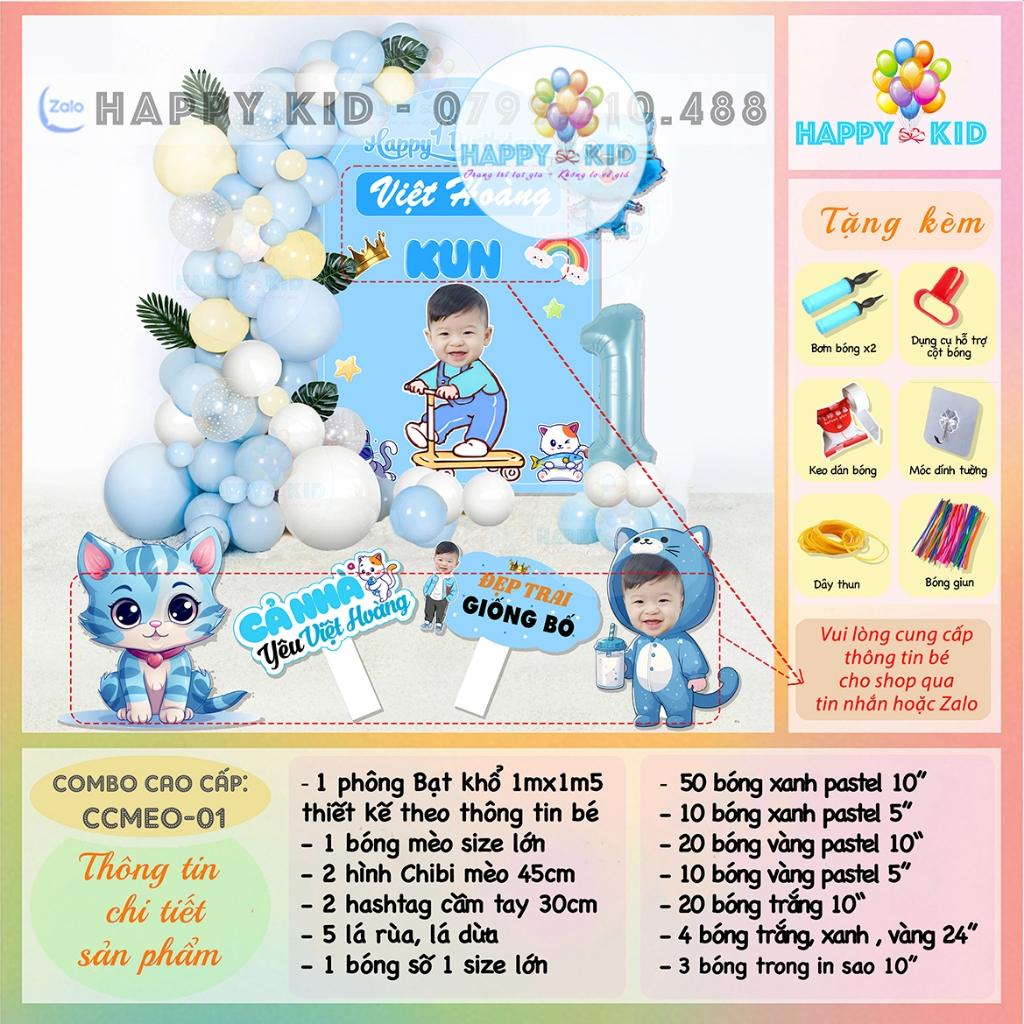 [CBCC Mèo 01] Set bóng tuổi Mèo kèm backdrop dễ thương trang trí sinh nhật thôi cho bé trai bé gái Happy Kid -Trang Trí Sinh Nhật SBTM