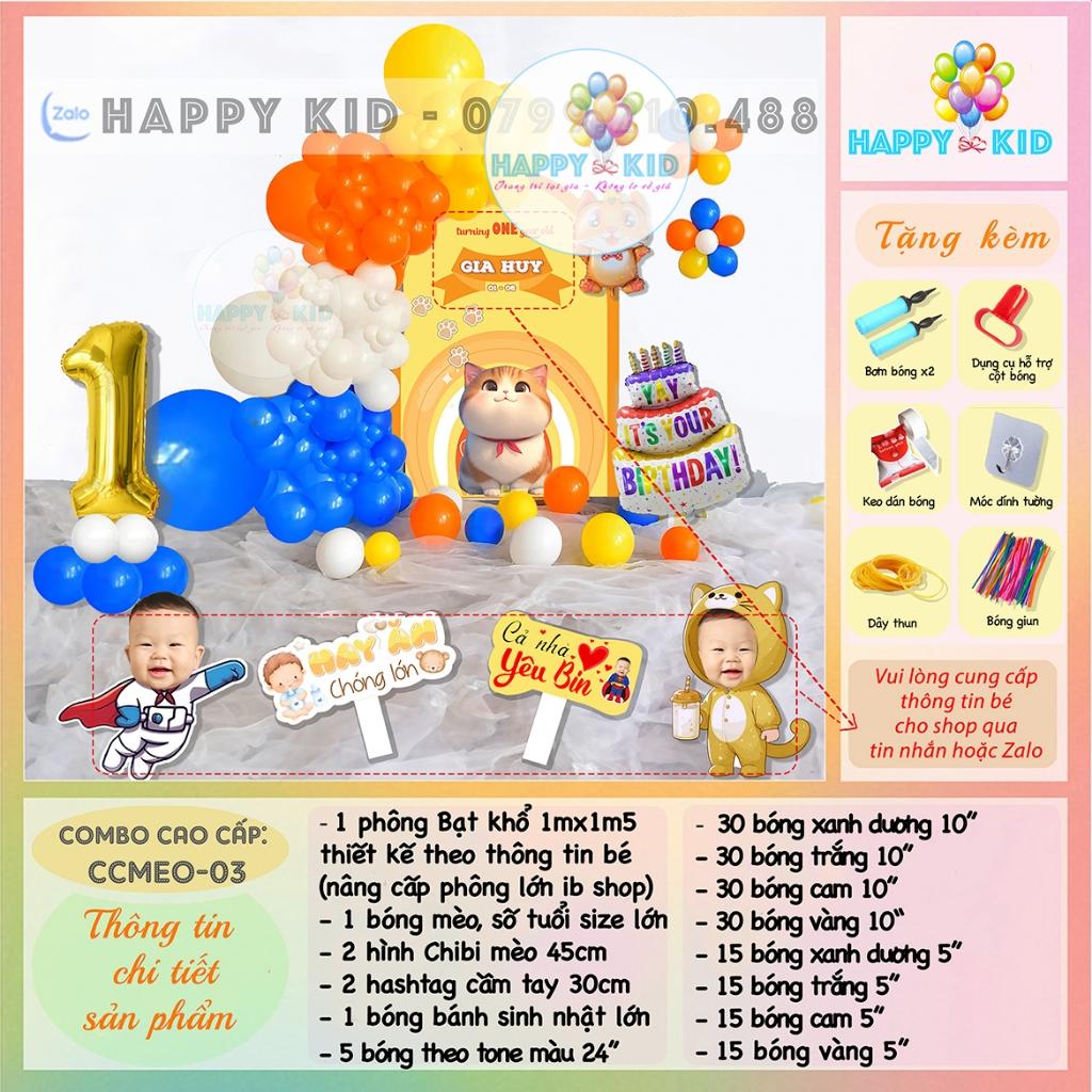 [CBCC Mèo 03]Set bóng tuổi Mèo kèm backdrop dễ thương trang trí sinh nhật thôi cho bé trai bé gái Happy Kid -Trang Trí Sinh Nhật SBTM