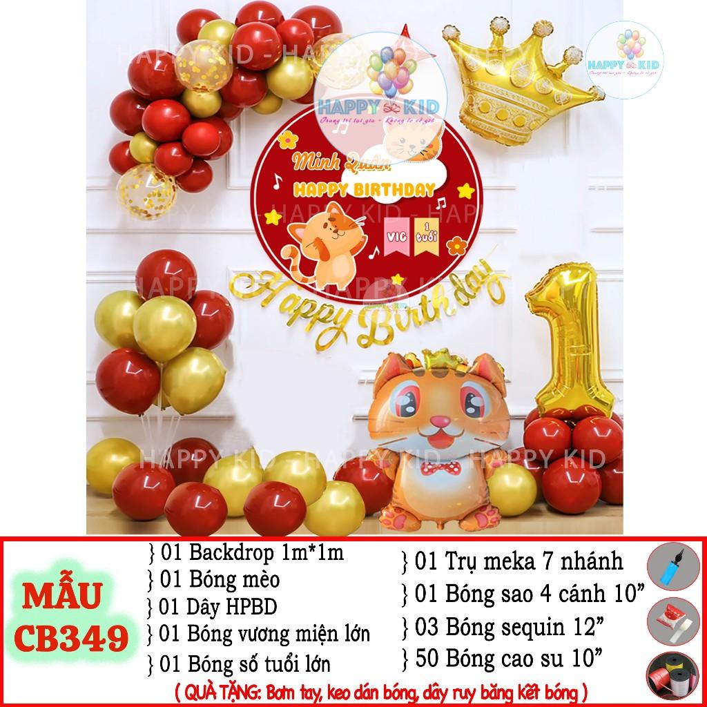 [Combo Mèo 349] Set bóng tuổi Mèo kèm backdrop dễ thương trang trí sinh nhật thôi cho bé trai bé gái Happy Kid -Trang Trí Sinh Nhật SBTM