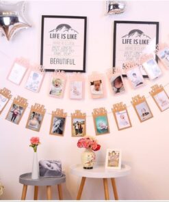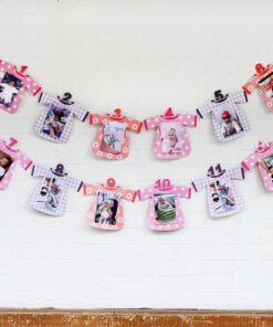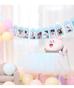 – Có thể kế hợp Dây treo khung ảnh 12 tháng kèm in ảnh trang trí sinh nhật thôi nôi cho bé trai bé gái cùng dây đèn đom đóm hay dây đèn trái bi để tường ảnh của bạn thêm lung linh nha ^^