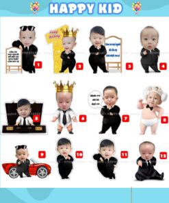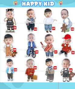 Hình chibi sinh nhật trang trí sinh nhật thôi nôi cho bé trai bé gái thiết kế theo yêu cầu HAPPYKID CHIBISN
