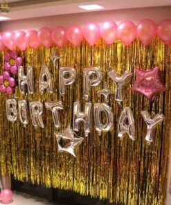 Rèm kim tuyến nhiều màu sắc phù hợp kết hợp với các set bóng, dây chữ sinh nhật để tạo thành một phông sinh nhật độc đáo ấn tượng, đặc biệt lung linh trong ngày sinh nhật.